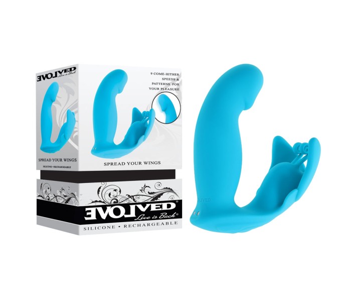 Spread your wings and soar to ecstasy with this multi-motor vibrator that features a come-hither motion in the curved shaft's head and a butterfly stimulator with flexible wings and floppy dual antenn..