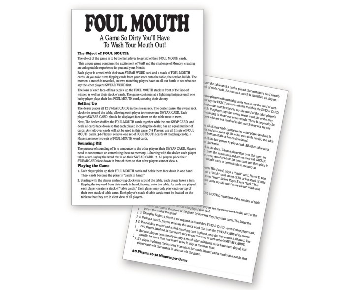 This unique game combines the excitement of WAR and the challenge of Memory, creating an unforgettable experience for you and your friends. Each player is armed with their own SWEAR WORD card and a s..